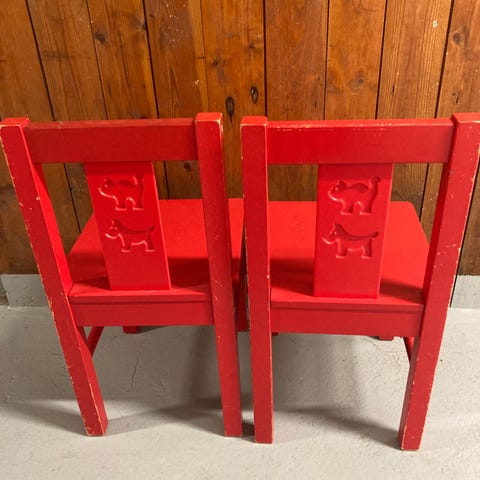 En klassisk barnstol från IKEA i vitmålat trä. Stabil och tidlös modell som passar fint vid matbordet eller i barnrummet.