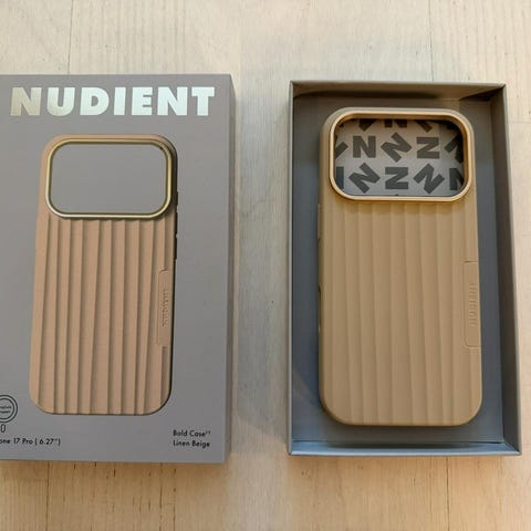 Nudient mobilskal i vitt. Använd endast en gång. För iPhone 17 PRO Max.