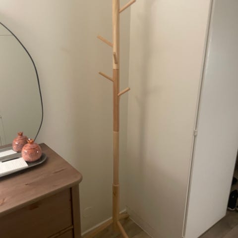 Kromad metall och vit, den har åtta krokar och är snurrbar.