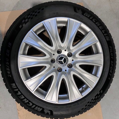 Original Mercedes (Mercedes E-class 210) fälgar med nya dubbdäck.