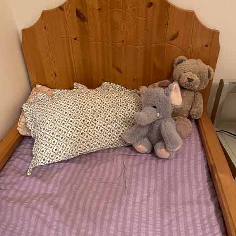 Sängen är monterad idag men kan enkelt monteras ned vid hämtning.