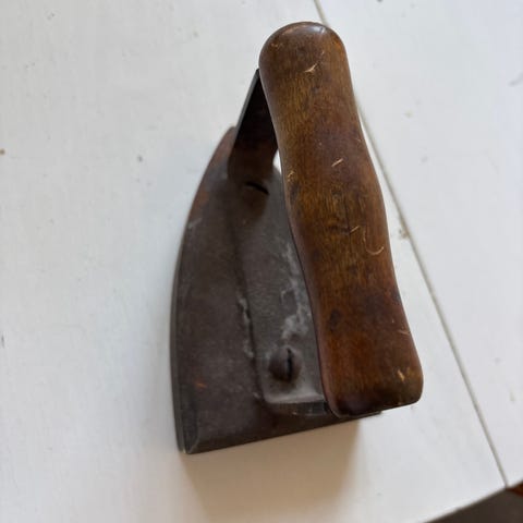 Antikt strykjärn gjutjärn med trähandtag