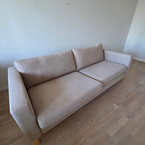 Fin beige soffa i bra skick säljes. Stilren och bekväm, passar i de flesta hem. Inga större skador eller fläckar.