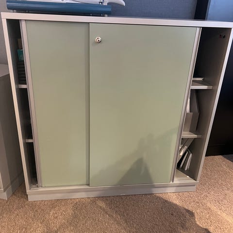 Förvaring: hyllplan och skjutdörrar