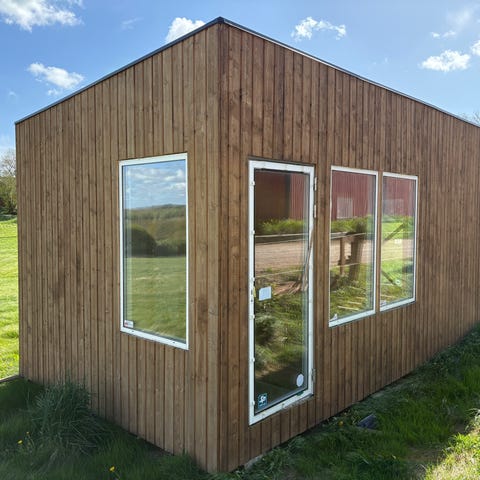 Takläkt, yttertak, plåt, port och ytterdörr ingår ej.