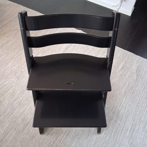 Pall för barn att hjälpa till i köket. Gråmålat trä. Bra, använt skick.