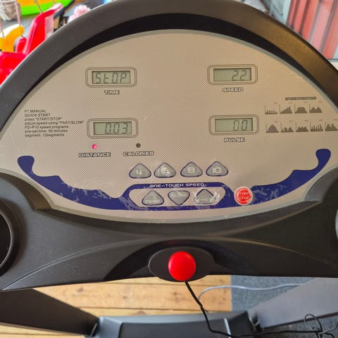 Attract löpband med digital display och kontrollpanel med flera funktionsknappar. Displayen visar bland annat hastighet, tid, distans och kaloriförbrukning. Löpbandet har en löpyta med två markeringslinjer och är avsett för inomhusträning och motion i hemmet. Passar för gång och löpning med möjlighet att justera hastighet via panelen.