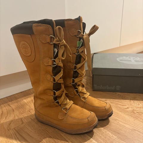Timberland vinterskor i stövelmodell i storlek 39. Kängorna är tillverkade i brunt skinn. Knappt använda. Storlek 39. 350kr plus frakt