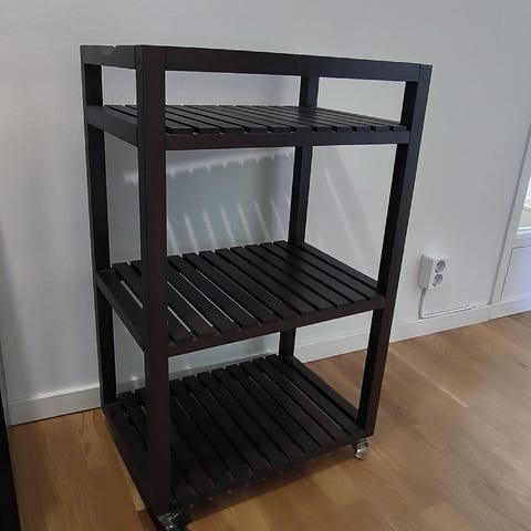 Hylla från Ikea. Kan monteras ned med skruvmejsel och sexkantsnycklar. Om ni själva monterar ned den och kommer coh hämtar den så kan ni få den.