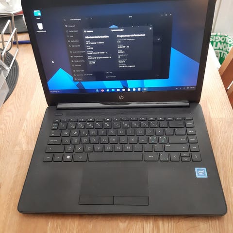 HP bärbar dator med cirka 14-tums skärm i silverfärgat chassi. Datorn har tangentbord i fullstorlek, styrplatta med integrerade knappar samt flera anslutningar, bland annat USB, HDMI och nätverksport. Passar för vardagligt bruk som webbsurf, kontorsarbete och enklare multimediaanvändning.