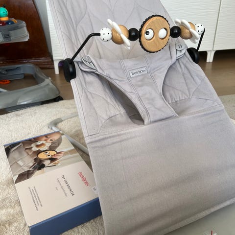 Den har blivit riktigt använd och kanske kan rädda många stunder i ert liv när man kan gunga ungen och hålla den nöjd en extra stund. Och en del kids kommer på hur dom ska gunga själva. Nu är våra äldre.