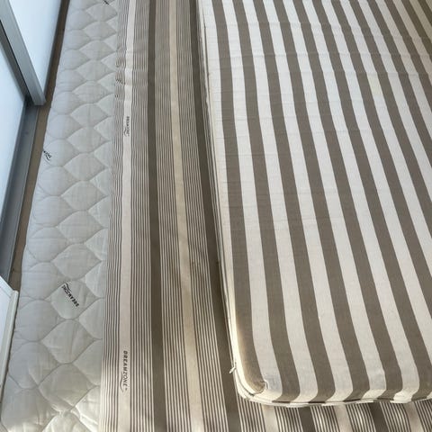 I mycket fint skick med grått överdrag till varje madrass.