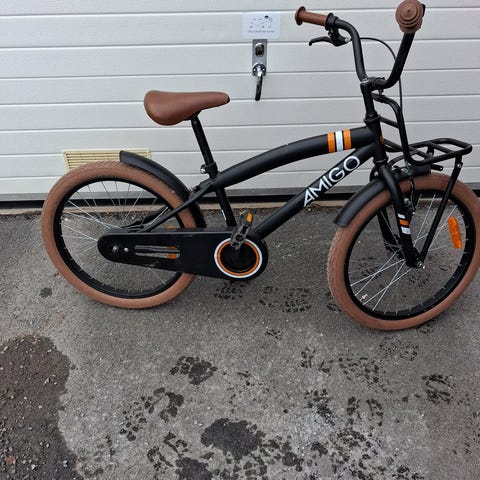 Revolt barncykel med 18" hjul i svart färg. Cykeln har hel kedjeskydd, stänkskärmar fram och bak samt stöd. Utrustad med sadel och styre anpassat för barn. Passar för barn som behöver en cykel i 18-tumsstorlek för vardagscykling och lek. Fotbroms