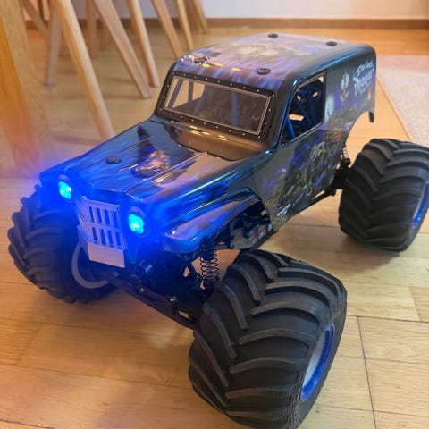 Endast körd ett par gånger, så så gott som nyskick! Kul liten monstertruck, men säljes pga köp av större! Följer med allt den kom med, batteri, usb laddare mm