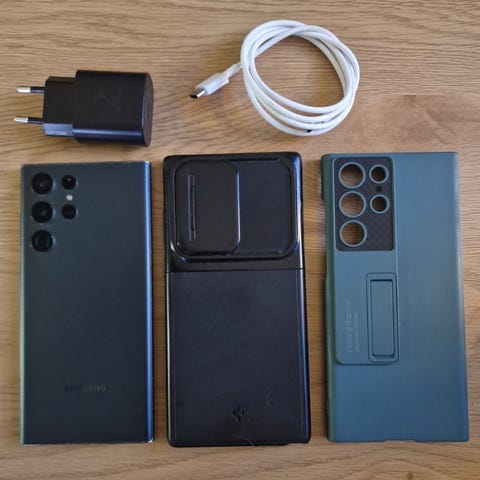Samsung Galaxy s22 Ultra med 256 GB internminne i använt nyskick. Allt funkar som den ska,