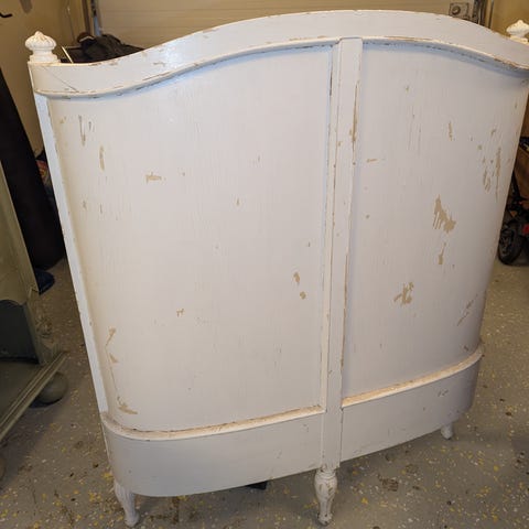 Antik växasäng som barnen har gjort extra fin med klistermärken och färg 🎨