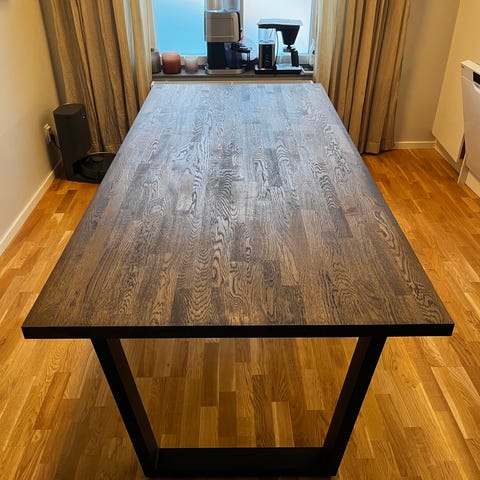 Möblerna är köpta hos Mio. Bordet är stabilt, snyggt och passar perfekt i ett modernt hem.