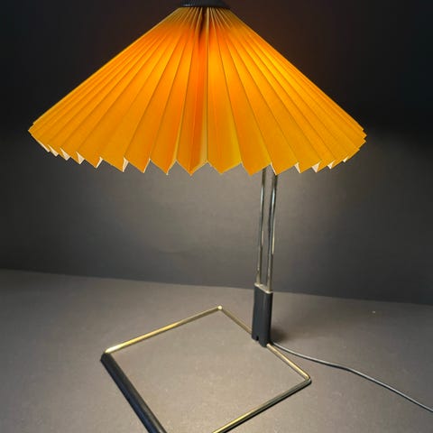 "Raketlampa" i string-stil med vita plastband. Banden är lagade på några ställen, men de är lätta att byta för den som tycker att de är för slitna, eller om annan färg önskas.