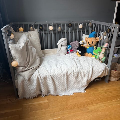 Hemgjord barnsäng med ribb botten. 170x80