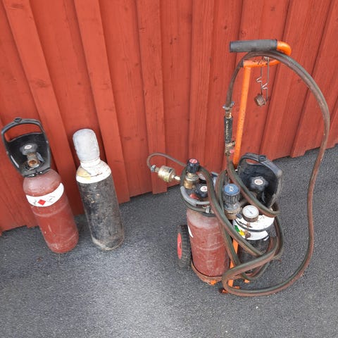 1st migsvets Luna 140 A, 1st "pinnasvets" ESAB 130 A, 1st AGA Gas-svets inkl. Munstycken. Mindre kompressor.