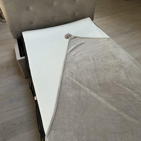 Tvättbart överdrag till bäddmadrasserna som är ca 8 cm tjock.