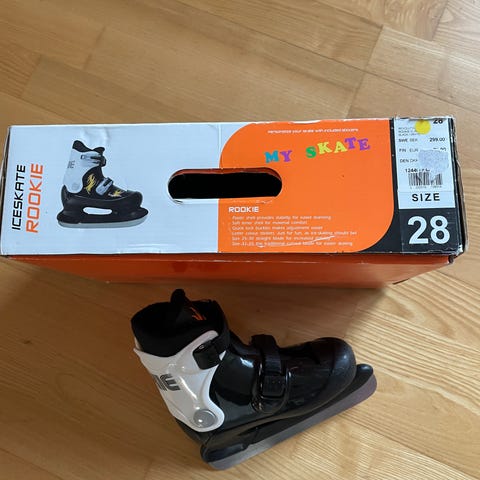 Säljer barnskridskor i storlek 28. Vita skridskor med snörning och fodrad insida för extra värme och komfort. Passar för barn som vill åka skridskor på isbanor eller sjöis. Blad i metall och ovandel i lädermaterial med klassisk modell för allmän åkning.