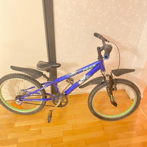 Barncyklar med 20" hjulstorlek. Cyklarna på bilderna har låg ram, fotbroms bak och handbroms fram. Utrustade med framkorg och pakethållare bak.
