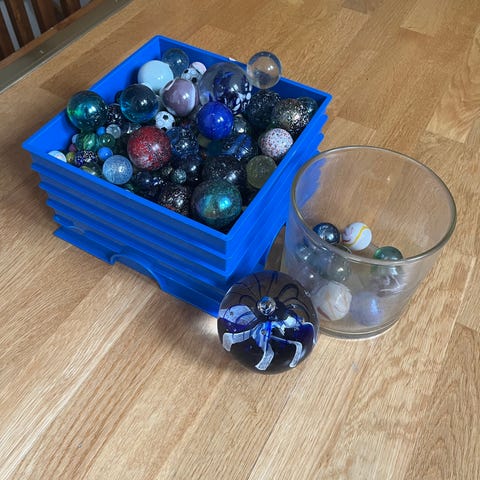 Bortskänkes, Glaskulor i blandade storlekar och färger