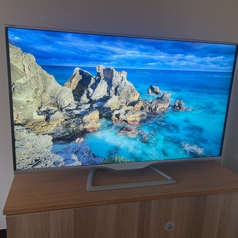 Philips tv. 43 tum Platt tv med bordsstativ, lämplig för placering på tv-bänk eller liknande. Passar för vanlig tv-tittande och anslutning av externa enheter via tillgängliga ingångar på baksida eller sida av tv:n.