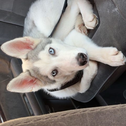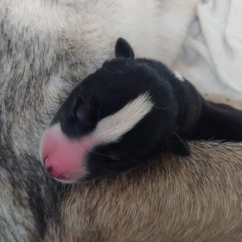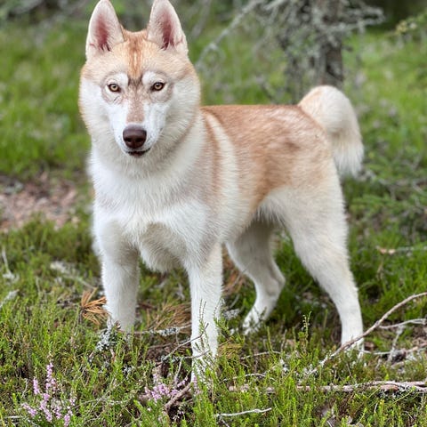 Vi har en grönögd tik som är 11 veckor gammal. Hon är lekfull och pigg. Hon är