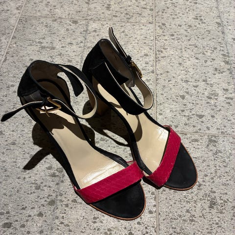 Fina sandaletter från Minelli, mkt hög kvalitet, strlk 38, Made in Brazil, klack av trä, läder och svart mocka.