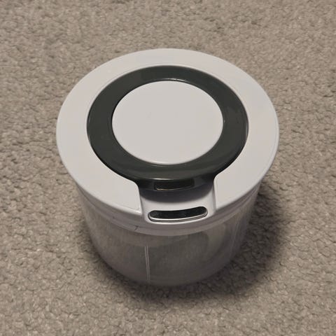 Hackade ingredienser kan enkelt hällas ut genom en öppning utan att locket behöver tas bort.