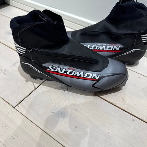 Salomon Profil Country 7 längdpjäxor med SNS Profil-bindningssystem. Pjäxorna är svarta med gröna detaljer och snörning samt högre skaft för stöd runt vristen. Ovandelen är i syntet-/läderliknande material med vadderad insida. Sulan är anpassad för SNS Profil-bindningar. Innersulan på bilden visar ungefärlig innermåttslängd, st 42 vilket kan användas som referens för storlek. Passar för klassisk längdåkning med SNS Profil-system.