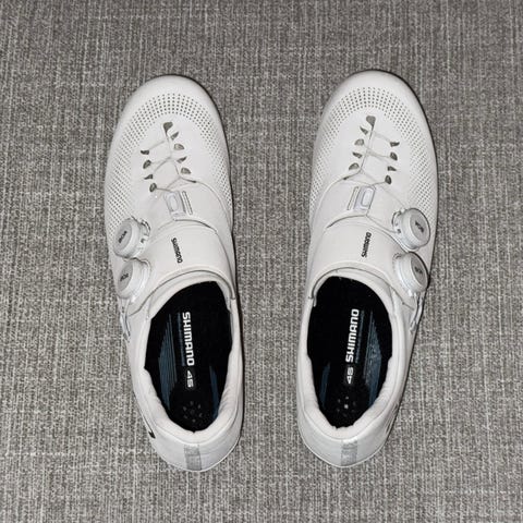 Sparsamt använda varför de säljs. Är strl 46, men vad Shimano verkar gå korta och små i storleken varför många hävdar att man bör välja en storlek större än vad man brukar ha (för mig 44,5-45). Stämmer för mig, uppleva som en storlek 45. Är Wide modellen, känns något bredare än något slags snitt men inte som vissa "high volume" skor sitter åt med bra hälgrepp osv i övrigt men har en lite bredare läst. Fina vitsord i recensioner och test.