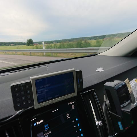 Magnetisk Taxiskylt med lampa i gul färg med svart text "TAXI" avsedd för montering på taxibil.