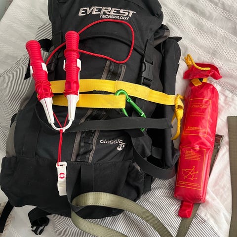 McKinley ryggsäck i röd och grå färg. Är inköpt för långfärdsskridskor, men knappt använd. Ryggsäcken har toppöppning med lock, flera yttre fickor med dragsko samt justerbara remmar och bärsystem med höftbälte och bröstrem. Passar för vandring, friluftsliv och resor där det behövs god packvolym och stabil bärkomfort.
