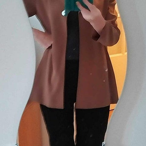 Classic camel coloured oversized womens blazer- very elegant and chic.