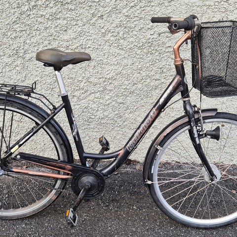 Servad och smord. Handbroms och fotbroms. Batteribelysning fram och bak. Slanglås med två nycklar följer med. Allt fungerar på cykeln.