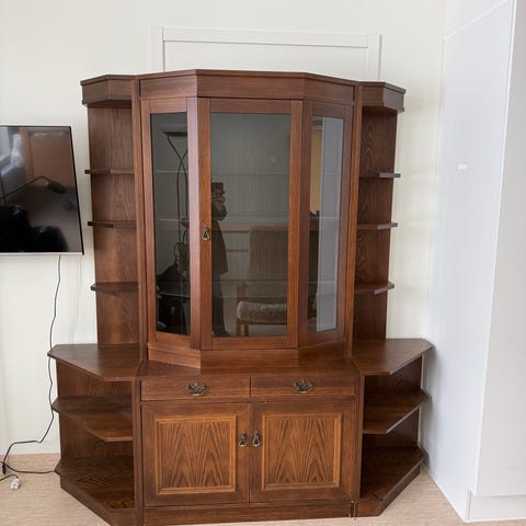 Spegelglas i ryggen samt på den nedersta hyllan.