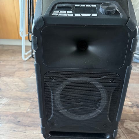 Eltax Voyager BT portabel högtalare i svart utförande. Modellen är utrustad med inbyggd förstärkare och kontrollpanel på baksidan. Högtalaren har handtag och hjul för enklare transport. Lämplig för användning vid exempelvis evenemang, träningar eller andra sammankomster där mobil ljudåtergivning behövs. Använt skick men fungerar, billigare vid snabb affär.