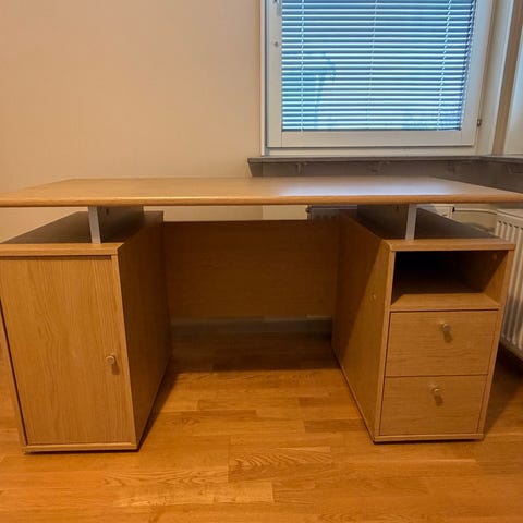 Säljer ett praktiskt och platsbesparande hörnskrivbord i mahogny. Den grunda högra sidans djup är 60 cm. Har stått i vår övernattningslägenhet och är varsamt använt. Ser ut som nytt. Behöver ut inom nära framtid, så lågt pris.