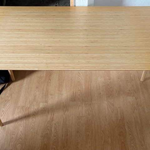 Snyggt och stilrent bord i bambu med konade ben. Finns lite slitage se bilder.
