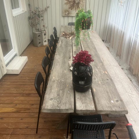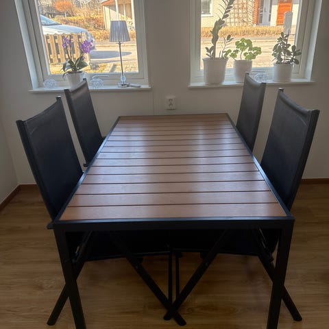 Matgrupp träbord och bänkar röd svart