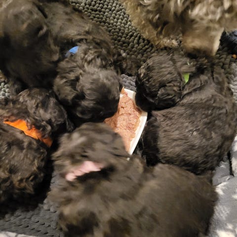 Valparna på bilderna är från tikens förra kull. Valparna är beräknade till 17/4. De levereras tidigast när de är åtta veckor gamla.