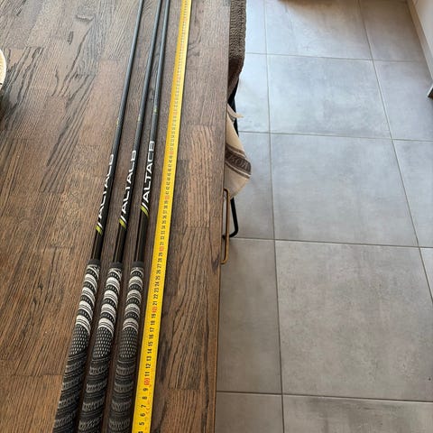 Altach/PING golfklubbsskaft i grafit med svarta skaft och röda grepp. Skaften är försedda med justerbara hoslar/fästen mot klubbhuvud. Lämpliga som reserv- eller utbytesskaft till golfklubbor där kompatibla fästen används. Exakt längd och flex framgår inte av uppgifterna utan får mätas och kontrolleras mot befintlig utrustning.