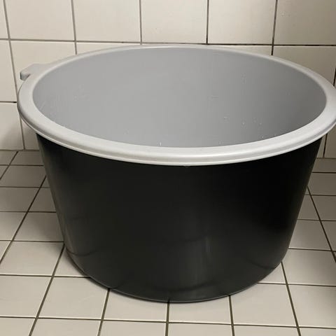 Uppvärmt kar med el som året om håller rätt temperatur på djurens vatten.