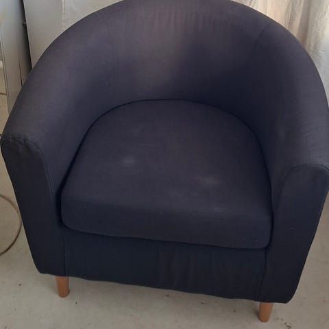 Rosa sammetsfåtölj, lite slitage på benen annars i bra skick