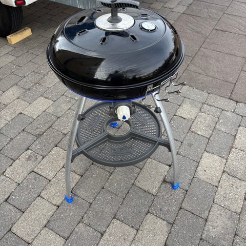 Det självklara valet på skoterturen, husvagnssemestern eller fiskeresan. Eftersom elden hålls stadigt ovanför markytan minskar risken för brand i skog och mark. Självrensande slits i botten som dränerar ut aska. Kaffepinne och justerbart stativ för stekhäll ingår. Lämplig för lite större sällskap upp till åtta personer.