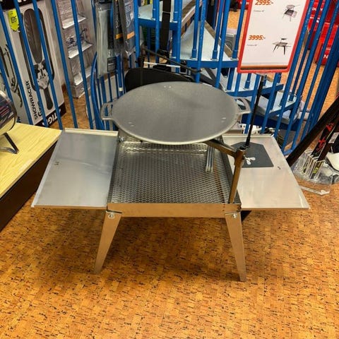Det självklara valet på skoterturen, husvagnssemestern eller fiskeresan. Eftersom elden hålls stadigt ovanför markytan minskar risken för brand i skog och mark. Självrensande slits i botten som dränerar ut aska. Kaffepinne och justerbart stativ för stekhäll ingår. Lämplig för sällskap upp till fyra personer.