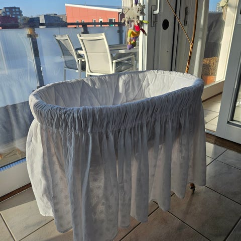 Fin äldre mosekorg för nyfödd. Korgen har hjul och går att flytta runt. Allt är orginal.